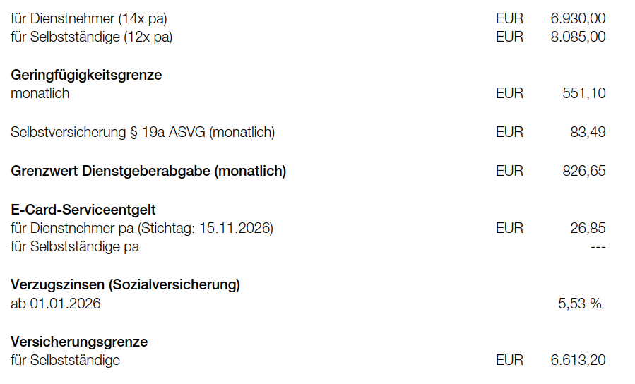 WERTE STEUER- UND SOZIALVERSICHERUNG 2026